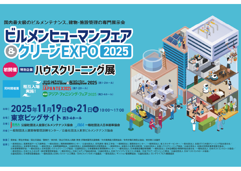 お知らせWEGOは、11月19日~21日 に東京ビッグサイトにて開催される「ビルメンヒューマンフェア&クリーンEXPO」に 出展 いたします。